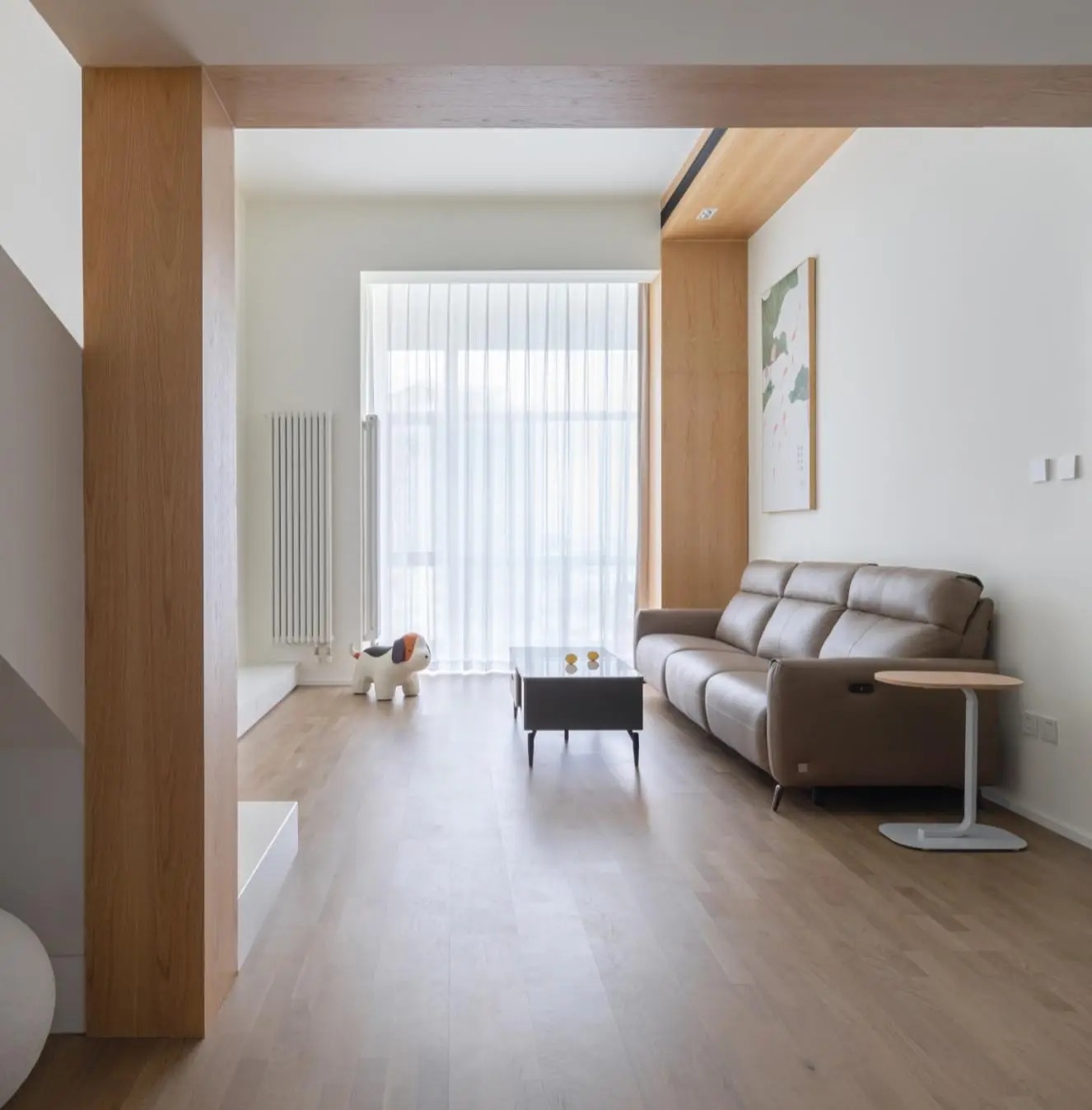 像下面这对夫妻在装修新家时,就以“去家务化”为设计核心,打造了一个极简好打理的新家。同时,巧妙的空间布局,明亮的氛围,也兼顾了实用与舒适。