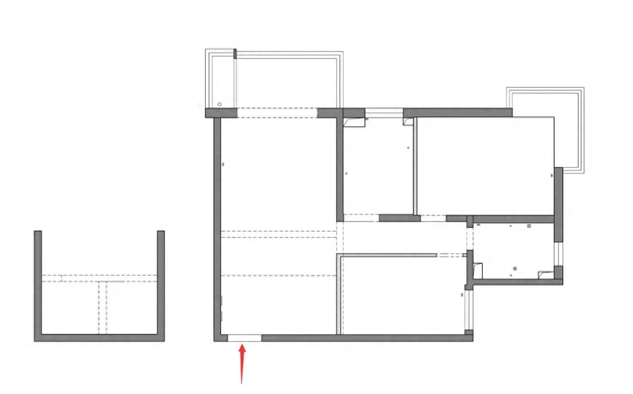 2、厨房门洞内退,释放出冰箱、洗烘机空间。