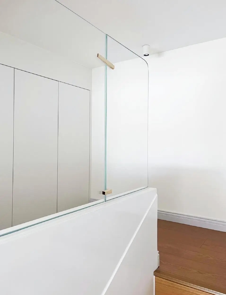 阁楼部分的防护栏选用了无边框玻璃,进一步体现了“去家务化”+“极简风格”主题。